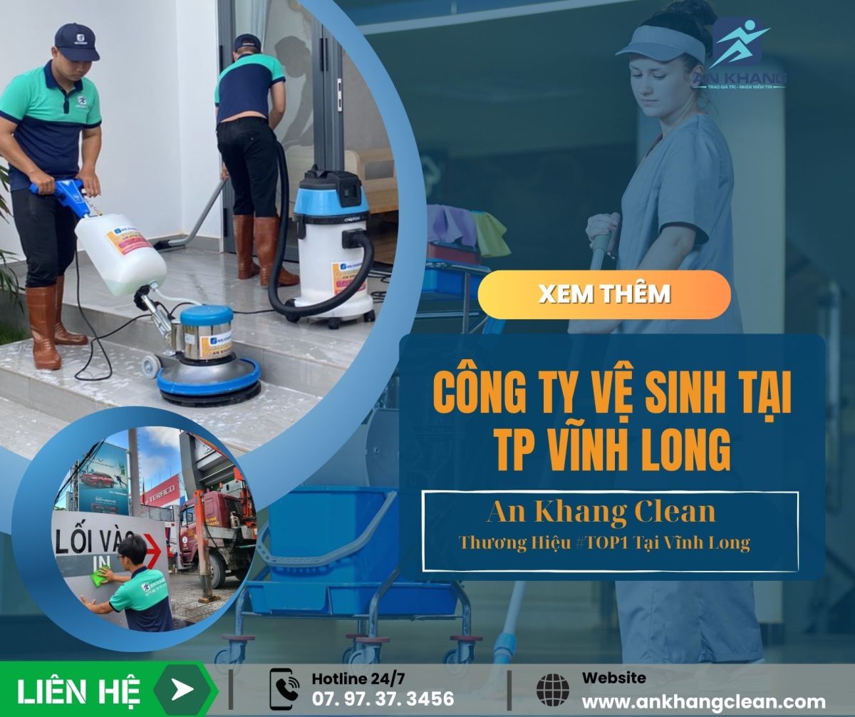 Tại thành phố Vĩnh Long, An Khang Clean đang cung cấp dịch vụ vệ sinh công nghiệp chuyên nghiệp, đáp ứng nhu cầu của các doanh nghiệp trong khu vực. Với đội ngũ nhân viên được đào tạo chuyên sâu và trang thiết bị hiện đại, công ty cam kết mang lại giải pháp vệ sinh toàn diện, đảm bảo an toàn và vệ sinh môi trường tại các nhà máy, xưởng sản xuất, kho bãi và văn phòng tại Vĩnh Long.