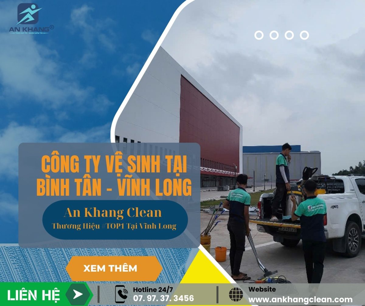 An Khang Clean là công ty dịch vụ vệ sinh công nghiệp uy tín, chuyên nghiệp hàng đầu tại Huyện Bình Tân, Vĩnh Long. Với đội ngũ nhân viên được đào tạo bài bản, trang thiết bị hiện đại và quy trình vệ sinh khoa học, An Khang Clean cam kết mang lại dịch vụ vệ sinh công nghiệp chất lượng cao, đáp ứng mọi nhu cầu của khách hàng.