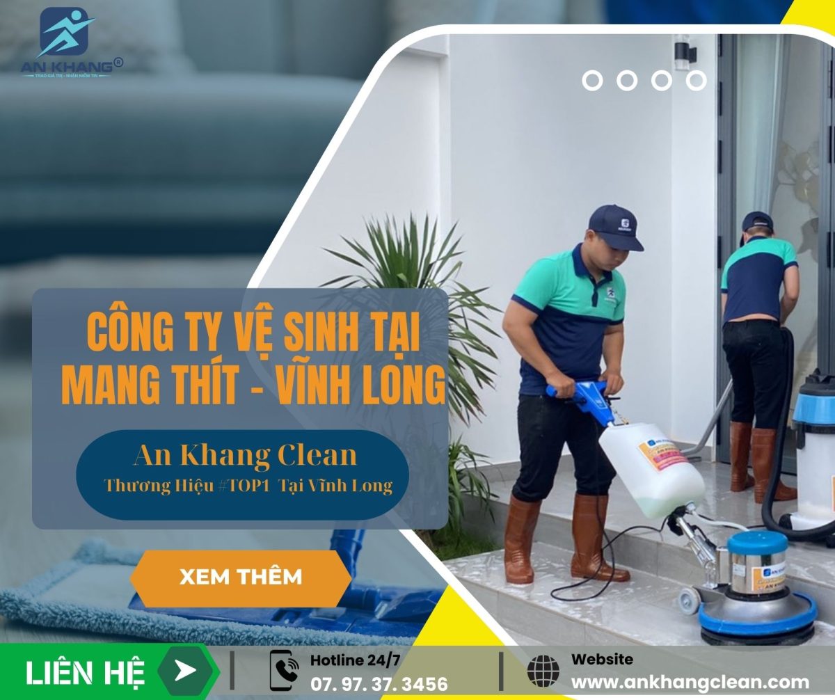 Huyện Mang Thít, Vĩnh Long là khu vực phát triển mạnh về công nghiệp, với nhiều nhà máy, khu công nghiệp và khu chế xuất hoạt động. Nhu cầu về dịch vụ vệ sinh công nghiệp ở đây rất cao, nhằm đảm bảo môi trường làm việc sạch sẽ, an toàn và hiệu quả sản xuất. Công ty An Khang Clean là đơn vị chuyên cung cấp dịch vụ vệ sinh công nghiệp uy tín tại Huyện Mang Thít.